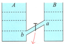 **例3**(黑龙江中考)如图所示,A、B两容器中装有同一液体,且液面高度相同,a点的压强小于b点的压强,当A、B间的阀门打开时,下列说法中正确的是 ( D )