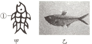7(2024·广东中考)图甲是甲骨文“鱼”字,乙是约4700万年前的鱼化石。下列分析错误的是 ( )