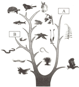 (1)仔细观察动植物进化的大致历程。将缺少的动植物类群补充完整,A______,B______。