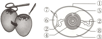 6(2024·广东汕头潮南区期中)根据“观察鸡卵的结构”实验,回答问题([ ]中填序号,横线上填结构名称)。