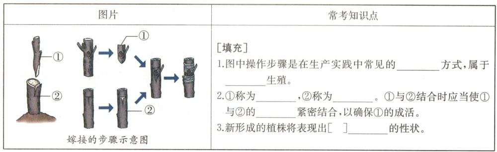 答案:1.嫁接 无性2接稳 砧木 形成层 3.① 接穗