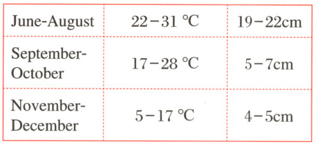 21. B【点拨】细节理解题。根据表格第三行“March...7 - 13℃”可知,3月的平均温度是7至13℃。故选B。