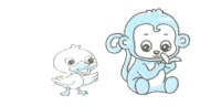 2. The monkey is ________ the duckling.