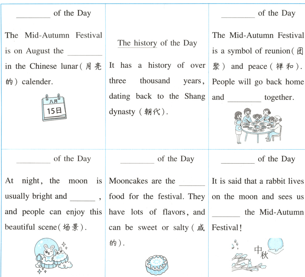 五、【学科素养·感知与积累】看图,读小故事,完成任务。