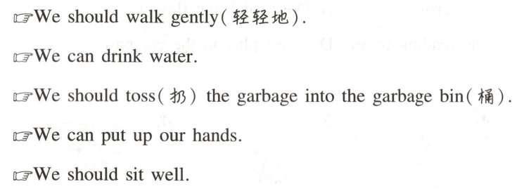 5. We should toss(扔) the garbage into the garbage bin(桶).