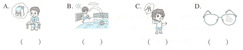 五、读句子,选出合适的词补全句子。然后为图片匹配相应句子,并把该句的序号写在图下括号内。