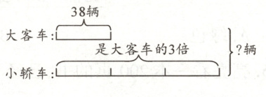 38 × 3 = 114(辆) 114 + 38 = 152(辆)