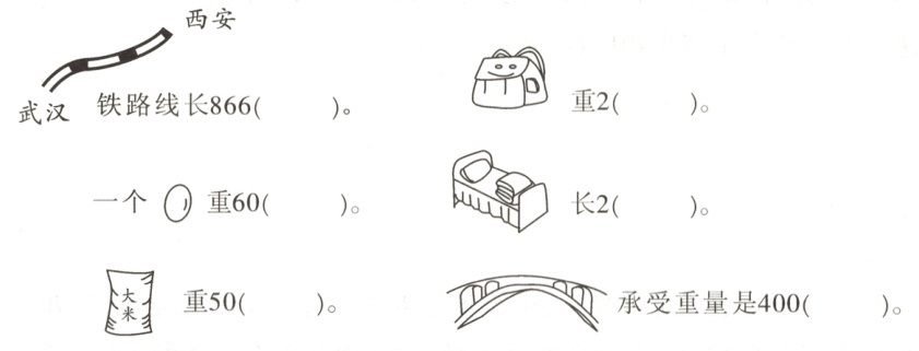 1. 一筐苹果重50千克,( )筐这样的苹果重3吨。一袋大米重25千克,10袋这样的大米重( )千克,( )袋这样的大米重1吨。