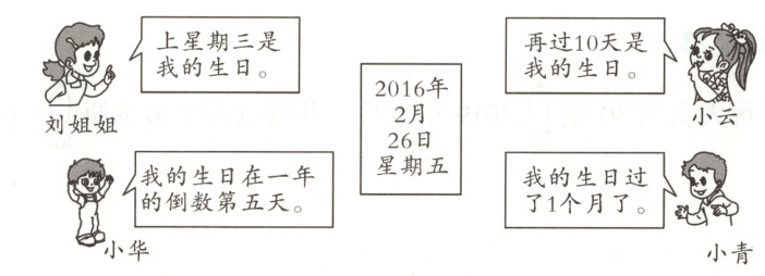 刘姐姐的生日是______月______日,小云的生日是______月______日,小华的生日是______月______日,小青的生日是______月______日。