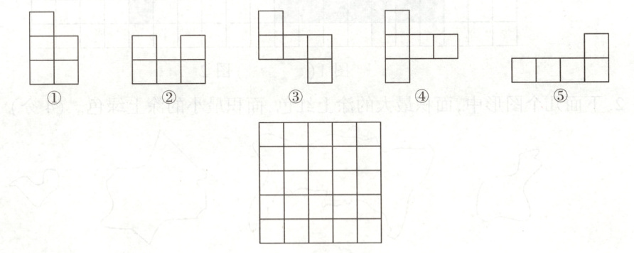 6. 用下面5个图形(每个图形的面积都是5平方厘米)拼成一个如下图所示的大正方形。(请在图中画出并标号表示你的拼法)(5分)