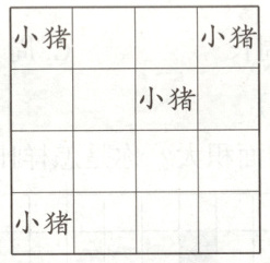 5. 猪妈妈家门前有一块空地(如下图),她把这块地分成大小、形状完全相同的四块给每个孩子盖一间房。你知道她是怎么分的吗?(不要改动小猪的位置,分一分)(4分)