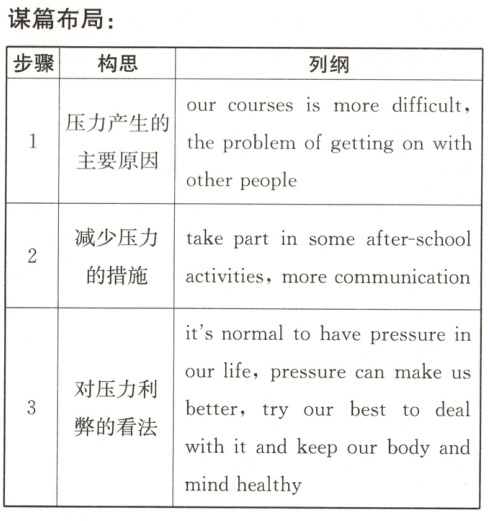 Here are two main reasons. One is that our courses is more difficult and the other is the problem of getting on with other people.① However,too much pressure is not good for teenagers’ development.② So how to deal with the pressure? Firstly,why don’t we take part in some after-school activities?③ It’s a good way to relax. Secondly,more communication often works.