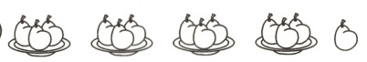 (2)有( )个梨,平均放在( )个盘子里,每盘放( )个,还剩( )个。