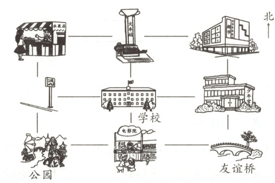 (2)少年宫在友谊桥的( )面,在超市的( )面。