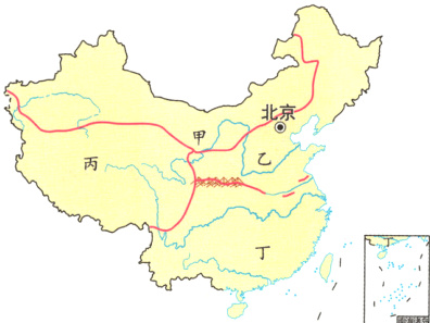 (2)秦岭是我国一条重要的地理分界线,图中 ( )