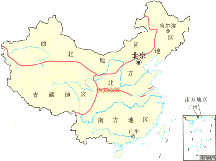 (1)与南方地区和北方地区的分界线大致一致的是 ( )