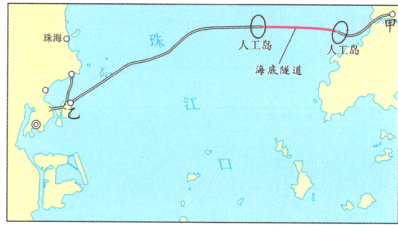 ①图中甲是澳门,乙是香港 ②港珠澳大桥海底隧道设计的主要原因是确保航道正常通航 ③珠江三角洲与港、澳的合作模式是“前店后厂”,其中港、澳扮演“厂”的角色 ④港珠澳大桥的兴建,加强了珠江口东岸和西岸的联系,有利于大湾区成为全球科技创新高地