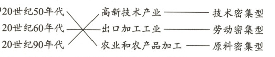 (连一连)(1)将经济发展历程、特点与主导产业类型连线。
