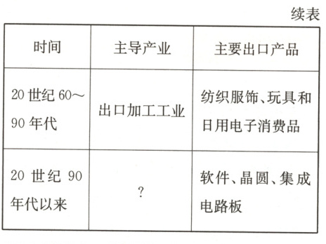 (2)推测20世纪90年代以来,台湾省的主导产业是 ( )