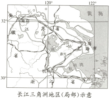 (2)根据所学分析可知,长江三角洲地区地理位置的优越性:①地处平原地区,地势平坦,陆上交通发达;②位于亚热带季风气候区,有足够的降水,气温适宜,农业发达,为工业奠定基础;③位于长江入海口,水源充足,水运便利,海港较多;④沿海地区开放较早,经济发达;科技先进,基础设施完善;⑤国家政策支持;⑥腹地广阔,有庞大的市场等。