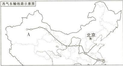 7. 西气东输一线西起轮南油气田,它位于图中字母“A”所表示的( )