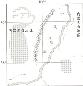 (2024重庆中考)宁夏平原由于“大山护着”“大河爱着”,成为了我国重要的商品粮基地,生产出的商品粮品质优良,自古享有“塞上江南”“西北明珠”的美称。下图为宁夏平原地区简图。读图,回答1~3题。