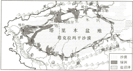 8.“择水而居,依水而生”体现了塔里木盆地的城镇多分布在( )