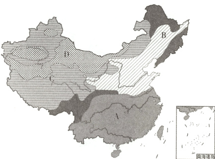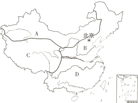 (1)填写四大地理区域名称:A ________地区,B ________地区,C ________地区,D ________地区。