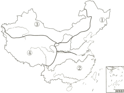 我国幅员辽阔,自然环境复杂多样,区域差异明显。读我国四大地理区域图,回答5~7题。