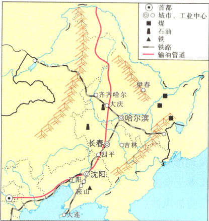 (3)该地区矿产丰富,交通便利,被誉为“新中国工业的摇篮”,其工业发展特点是( )