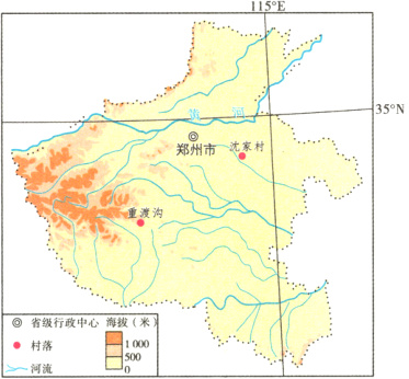 (2)读图可知,河南省东、西部存在自然环境差异,东部沈家村海拔在___________米以下,地势低平,以种植业为主;西部重渡沟地处_______,早期以砍竹挖矿为生。