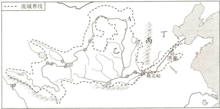 (2)黄河流经上、中游分界点A 后,进入乙 高原。乙高原东起丙 山脉,这里常见的传统民居是 。