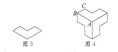 3(扬州模拟)图1是艺术家埃舍尔的作品,他将数学与绘画完美结合,在平面上创造出立体效果.图2是一个菱形,将图2截去一个边长为原来一半的菱形得到图3,用图3镶嵌得到图4,将图4着色后,再次镶嵌便得到图1,则图4中∠ABC的度数是( )