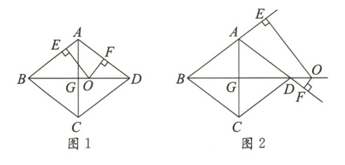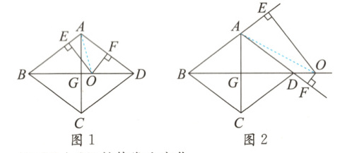 (3)如图2,当点O在对角线BD的延长线上运动时,OE+OF的值是否发生变化?若不变,请说明理由;若变化,请探究OE,OF之间的数量关系.