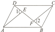 1.(2024·泸州中考)如图,在□ABCD中,E,F是对角线BD上的点,且DE=BF,求证:∠1=∠2.