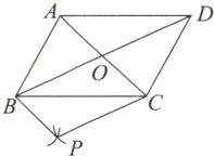 9.(十堰中考)如图,□ABCD的对角线AC,BD交于点O,分别以点B,C为圆心,1/2AC,1/2BD长为半径画弧,两弧交于点P,连接BP,CP.