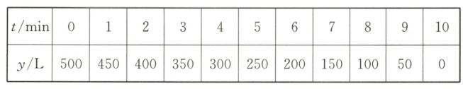 例6 一水箱中有水500L,现在往外放水,每分钟放水50L,请用三种不同的方法表示水箱中剩余水量y(单位:L)与放水时间t(单位:min)之间的函数关系.