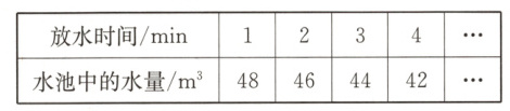 3.一个蓄水池有水50m³,打开放水闸门匀速放水,水池中的水量和放水时间关系如表: