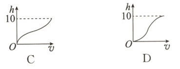 3.(广元中考)向高为 10 的容器(形状如图)中注水,注满为止,则水深 h 与注水量 v 的函数关系的大致图象是( )