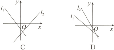 3.(重庆期末)直线$l_{1}$:y=kx-b和直线$l_{2}$:$y=\frac{b}{k}x+2b$在同一平面直角坐标系中的图象大致是( )
