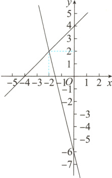 A.$\begin{cases}y = 2x + 4 \\ y = -3x - 6 \end{cases}$ B.$\begin{cases}y = x + 4 \\ y = -4x - 6 \end{cases}$