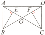 例$1 $如图,在矩形$ABCD$中,$AC$与$BD$交于点$O,$$BE⊥AC,$$CF⊥BD,$垂足分别为$E,$$F。$