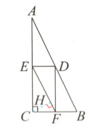 $(1)[$证明$]·\because D E //B C ,$$ D F//A C ,$∴四边形$ECFD$是平行四边形。又$\because \angle C = 9 0 ^{\circ} ,$$ \therefore.$四边形$ECFD$是矩形。