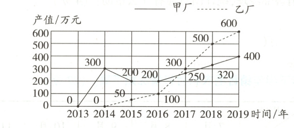 2. 下图是两个工厂2013~2019年产值的变化情况。