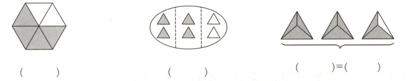 一、用分数表示各图中的涂色部分,并把假分数化成带分数。(8分)