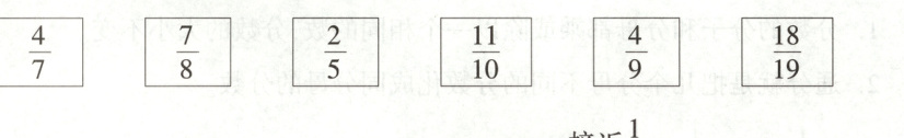 接近1: $\frac{7}{8}$、$\frac{11}{10}$、$\frac{18}{19}$接近$\frac{1}{2}$: $\frac{4}{7}$、$\frac{2}{5}$、$\frac{4}{9}$