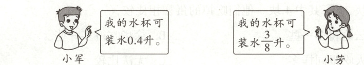 $\frac{3}{8}=0.375$ $0.4>0.375$ 小军的水杯大。