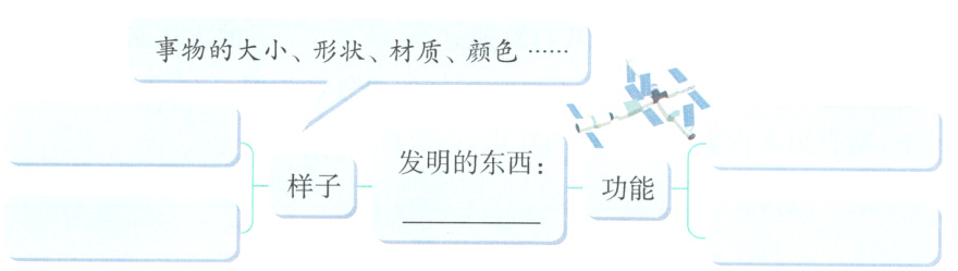 (示例)发明的东西:会飞的木屋 样子:外部下方有四个轮子,两侧有机翼 内部有探测雷达和望远镜 功能:遨游太空 自动除尘
