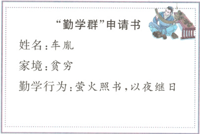 2. 新趋势 情境实践 假如古人要建一个“勤学群”,车胤和顾欢分别写了入群申请书。请你完成下面的练习。