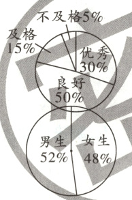 3. 某校男、女生人数占全校总人数的百分比情况如右图所示,已知男生有312人,则全校有( )人。